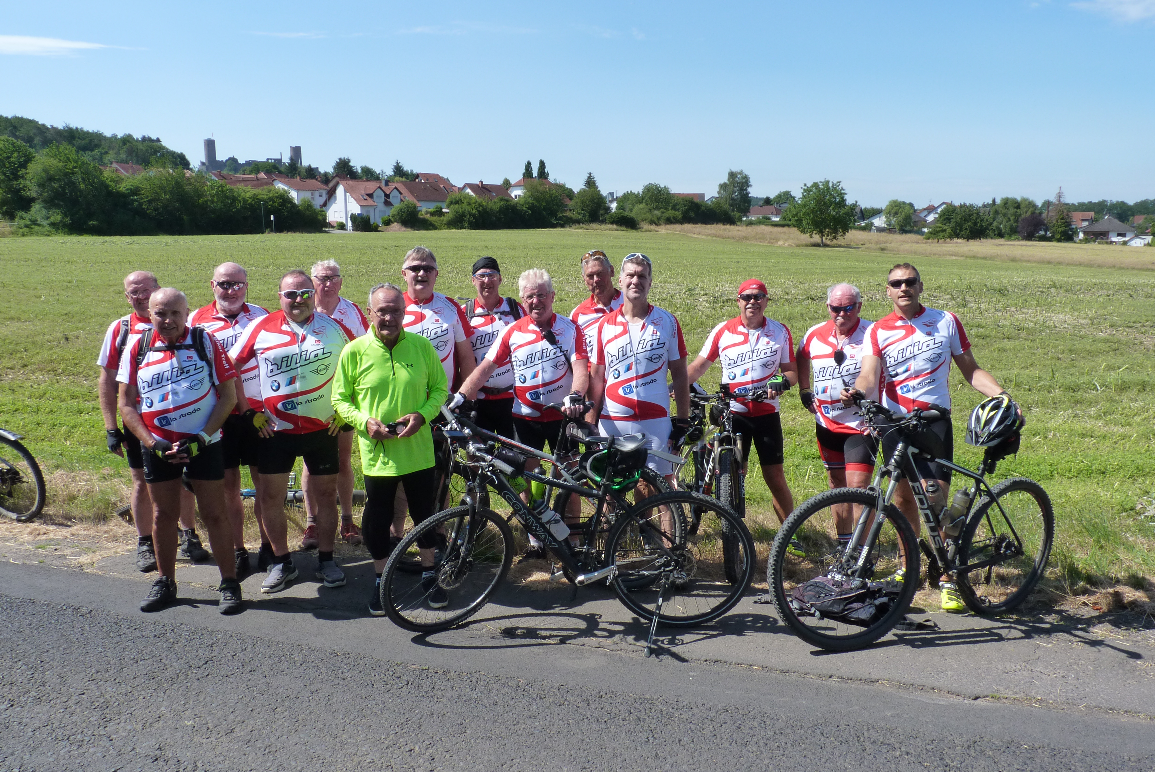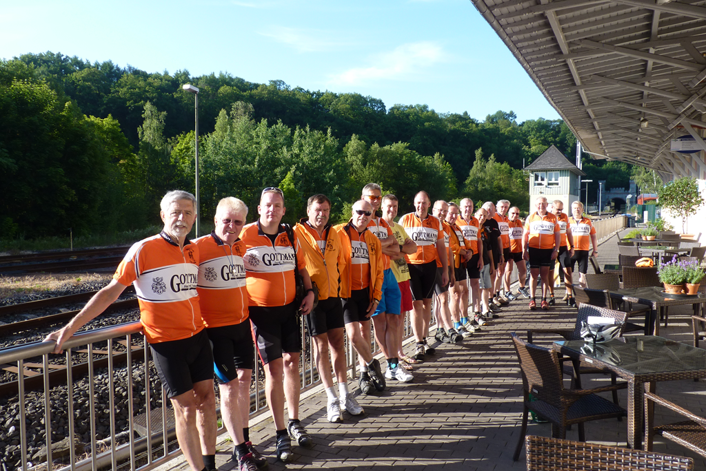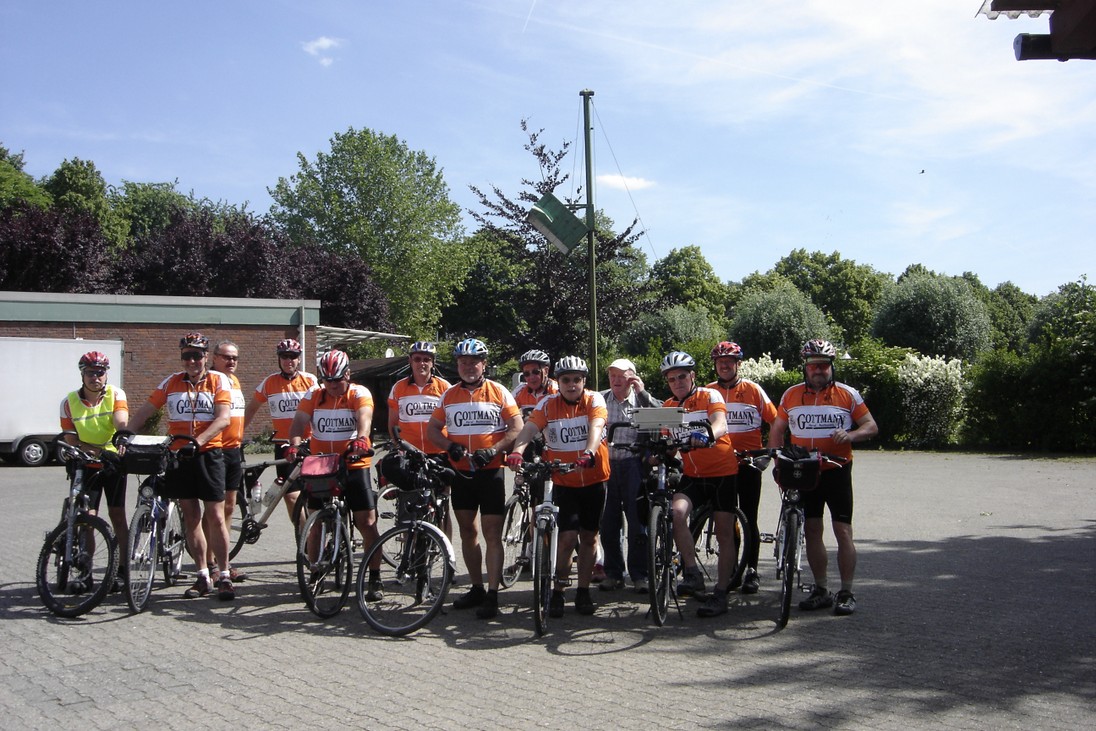 3 Tagen 340 km zurückgelegt, was alle 12 Fahrer ohne Probleme meisterten. Die im gleichen Outfit gekleidete Truppe wurde überall aufmerksam registriert und veranlasste selbst Auto-fahrer beim Fahrbahnkreuzen zum Anhalten.