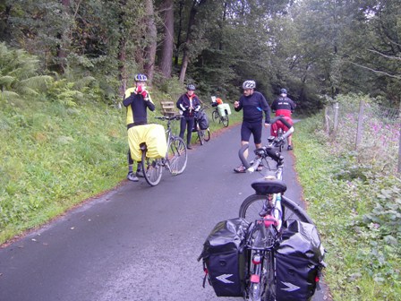 Die erste von vier Sternfahrten lief am Ankunftstag in der Umgebung Lippstadts mit 40 km Streckenlänge. Wie gut, dass es Regenkleidung gibt!