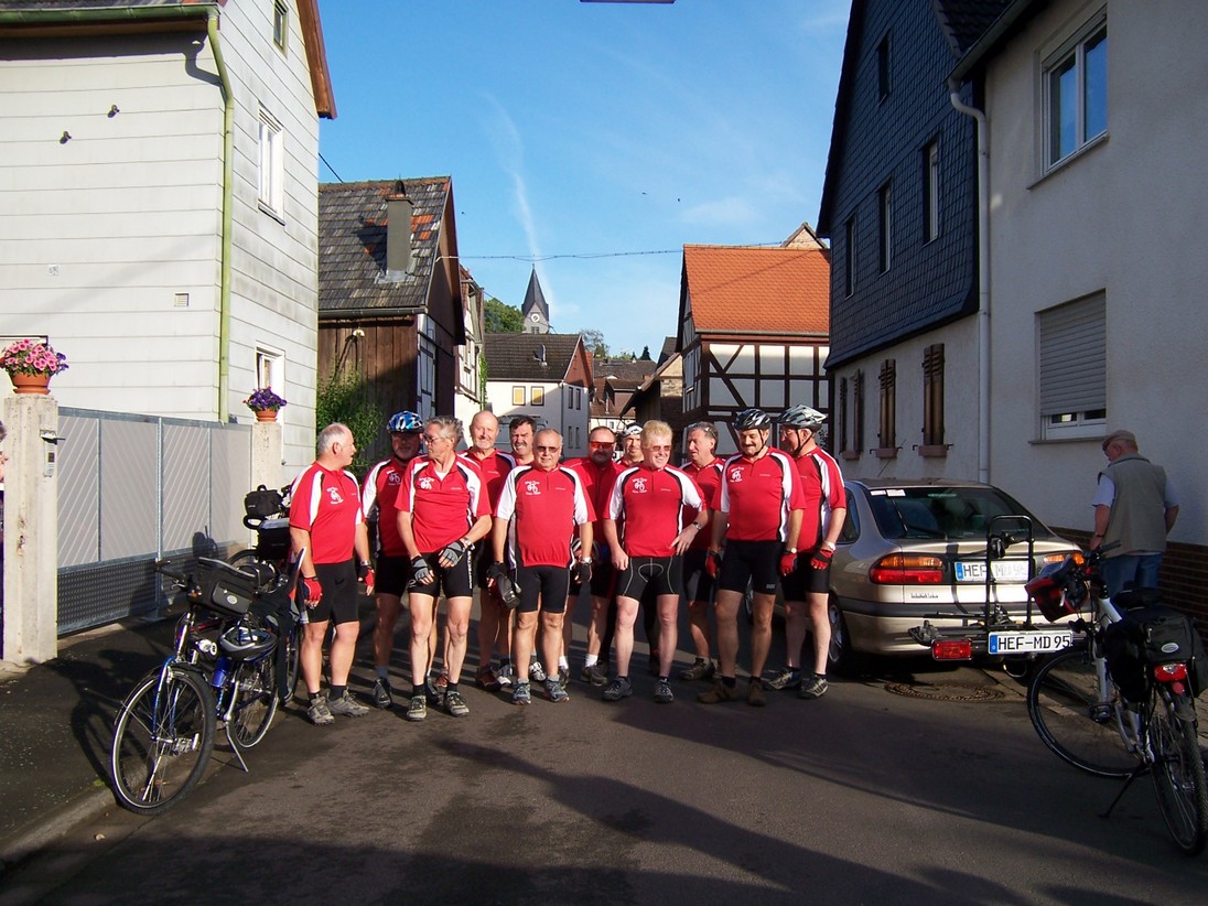 Zu ihrer diesjährigen Mehrtagestouren waren die Biker-Freunde aus Geiß-Nidda mit 19 Teilnehmern nach Helmlingen im schönen Rheintal aufgebrochen. An vier Tagen ging es von dort in Sternfahrten in die Umgebung. Noch am Anreisetag wurden zum Einradeln 52 km über Achern und Bühl zum Rheinufer und auf dem Rheindamm dann wieder zurück nach Helmlingen zurückgelegt. Wie immer bei diesen Mehrtagestouren war Vereinsvorsitzender Erich Eiser mit dem Begleitfahrzeug dabei und versorgte die Radfahrer unterwegs mit Getränken, frischem Obst und Süßigkeiten.